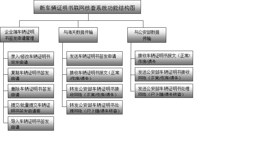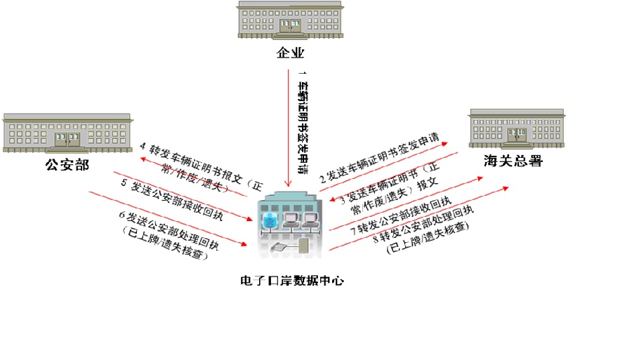 新车辆证明书联网核查系统对车辆证明书数据的录入方式作了较大的改变,增加了企业端,将原先由海关在联系单签发环节统一录入调整为由进口货物收货人或其代理人自行录入。企业在报关单申报后录入车辆证明书签发申请,在报关单放行后提交车辆证明书签发申请,由海关比对报关单信息进行后续处理,由bt365体育在线官网数据中心向公安部发送车辆证明书电子数据,接收并转发公安部关于车辆证明书地接收回执和处理回执,实现“一车一证”的数据联网核查。